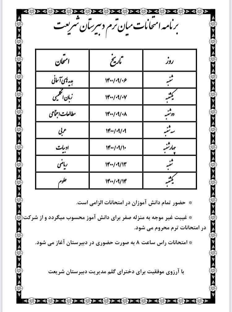 "با آرزوی موفقیت برای دخترای گلم مدیریت دبیرستان شریعت"