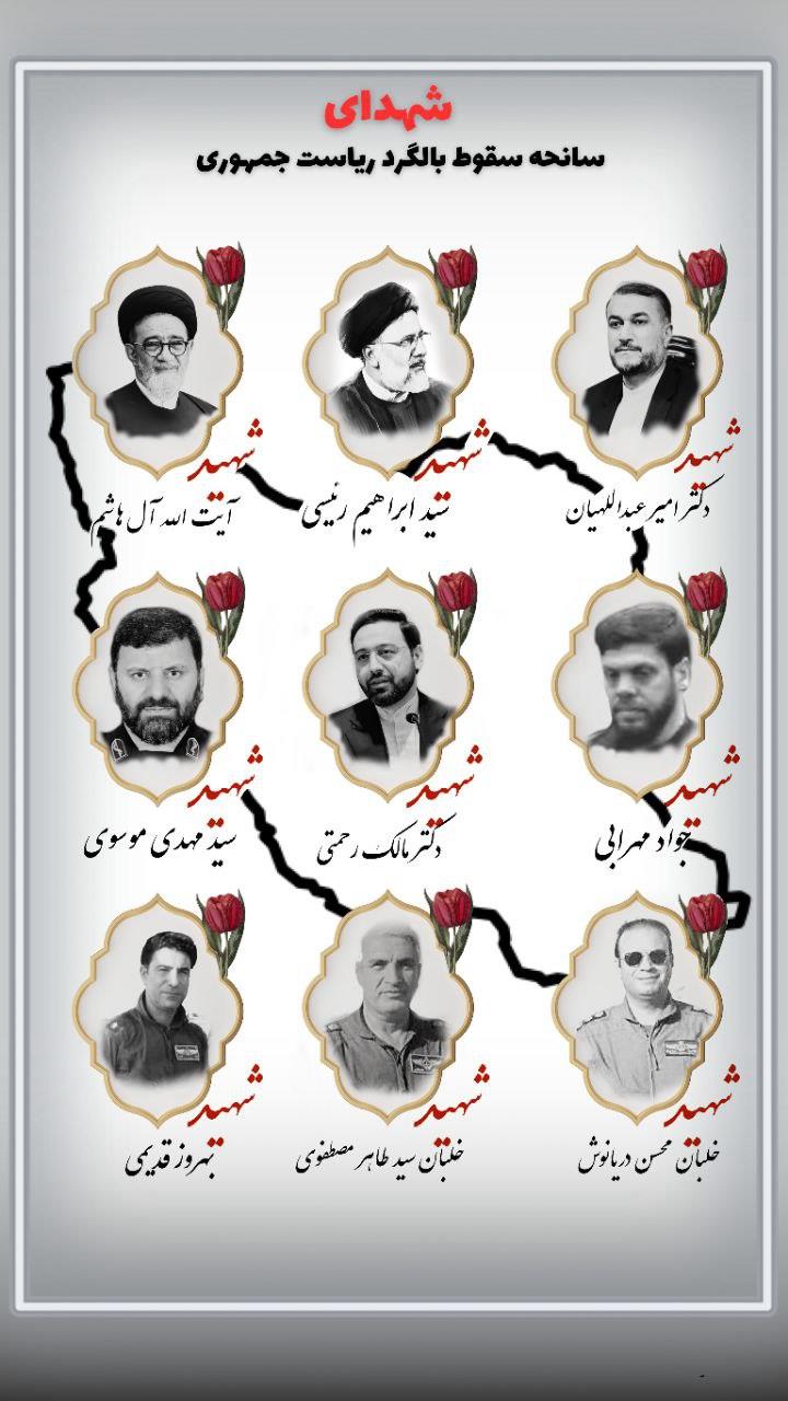 «بسم الله الرحمن الرحیم» 🏴 انا لله و انا الیه راجعون 🏴 مِنَ الْمُؤْمِنِینَ رِجَالٌ صَدَقُوا مَا عَاهَدُوا اللَّهَ عَلَیْهِ فَمِنْهُمْ مَنْ قَضَی نَحْبَهُ وَمِنْهُمْ مَنْ یَنْتَظِرُ وَمَا بَدَّلُوا تَبْدِیلًا 🏴 در روز ولادت با سعادت امام رضا (علیه السلام) خبر شهادت رئیس جمهور محترم و همراهان مایه تأسف و تأثر عمیق گردید . 🏴 شهادت رئیس جمهور مغتنم و همراهان را به خانواده نورکوثر تسلیت عرض مینماییم . از خداوند متعال برای روح درگذشتگان آرامش ابدی و برای بازماندگان صبر و شکیبایی مسئلت داریم.